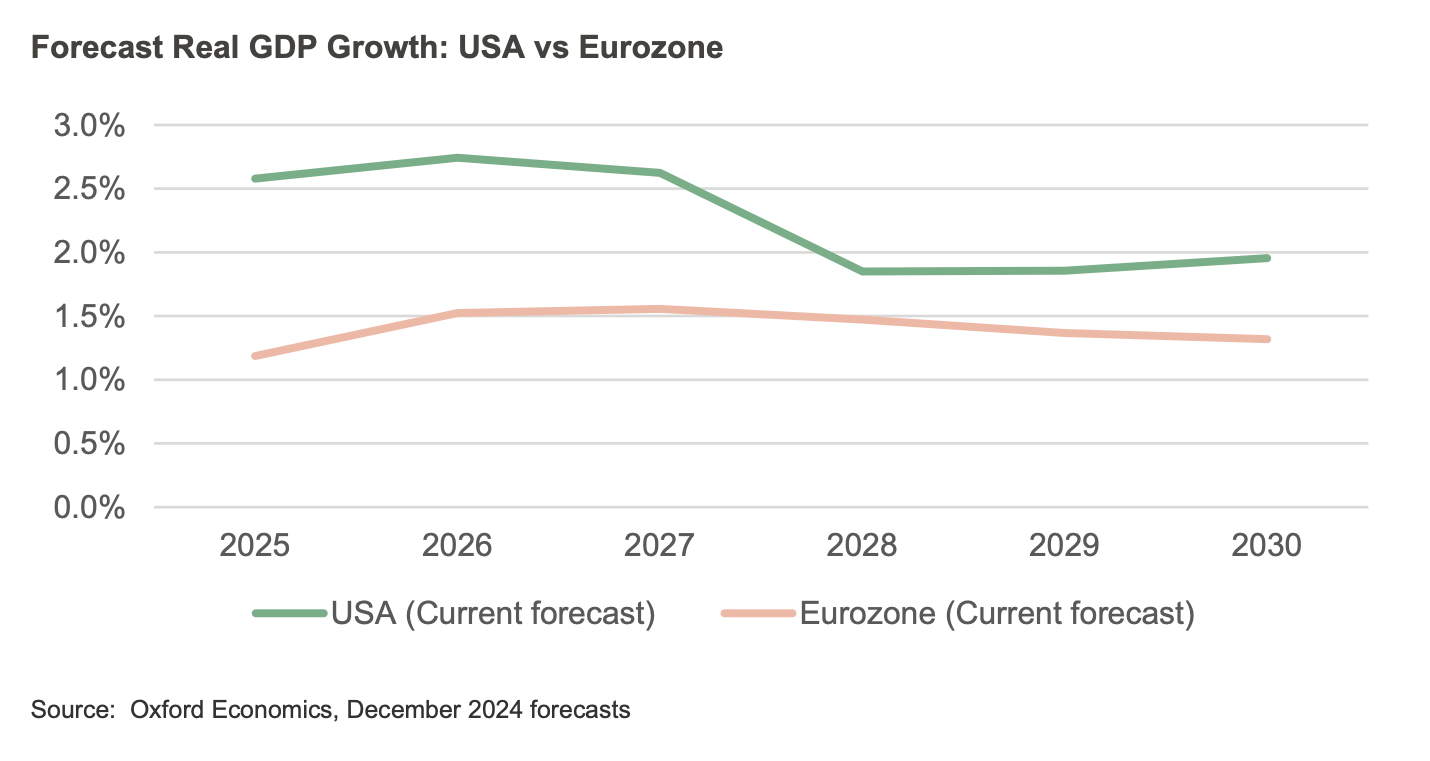 - Potential US tariffs may represent an additional and meaningful headwind for Europe