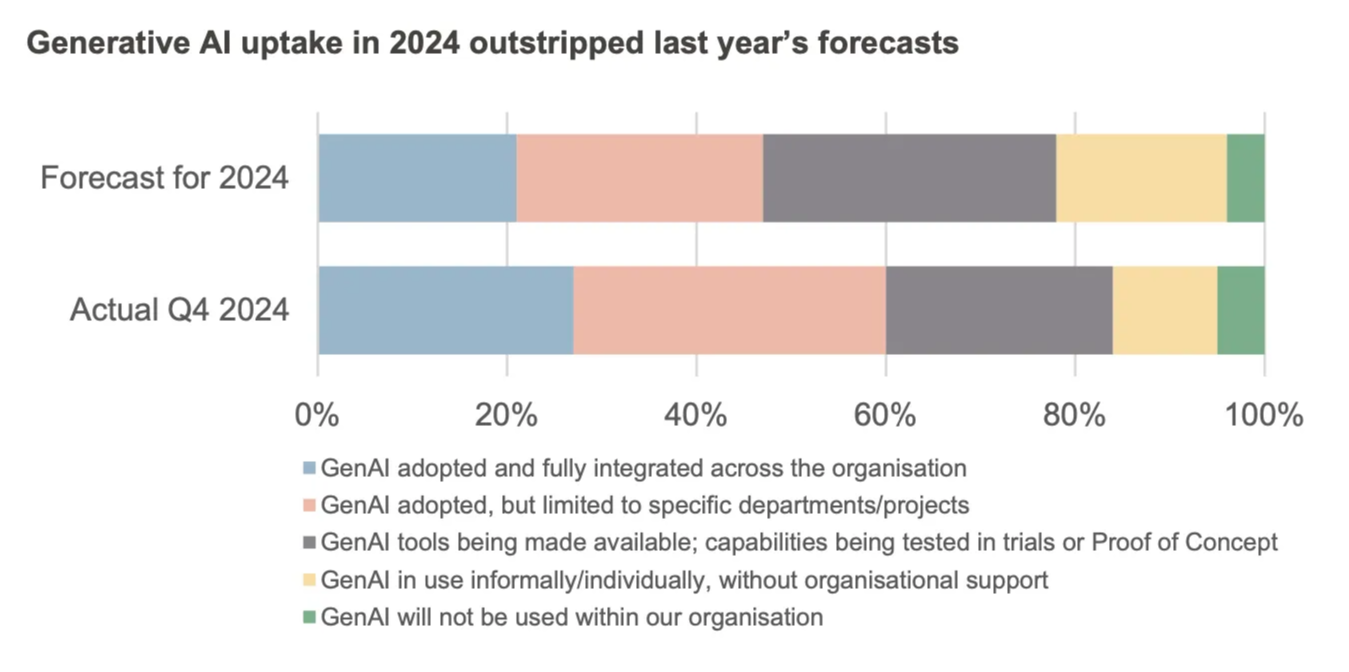 While 2024 saw significant investments into AI training capacity, substantial advancements in AI training and the development of new generations of AI hardware, 2025 is expected to see a meaningful uplift in demand for AI inferencing as AI software becomes more widely used. This comes as the uptake of Generative AI (focused on the creation of original content such as text and images) by businesses exceeded expectations in 2024.