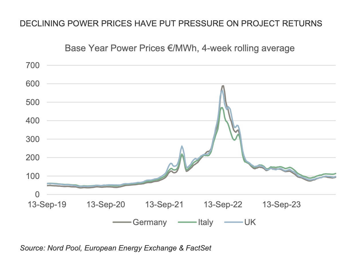 DECLINING POWER PRICES HAVE PUT PRESSURE ON PROJECT RETURNS