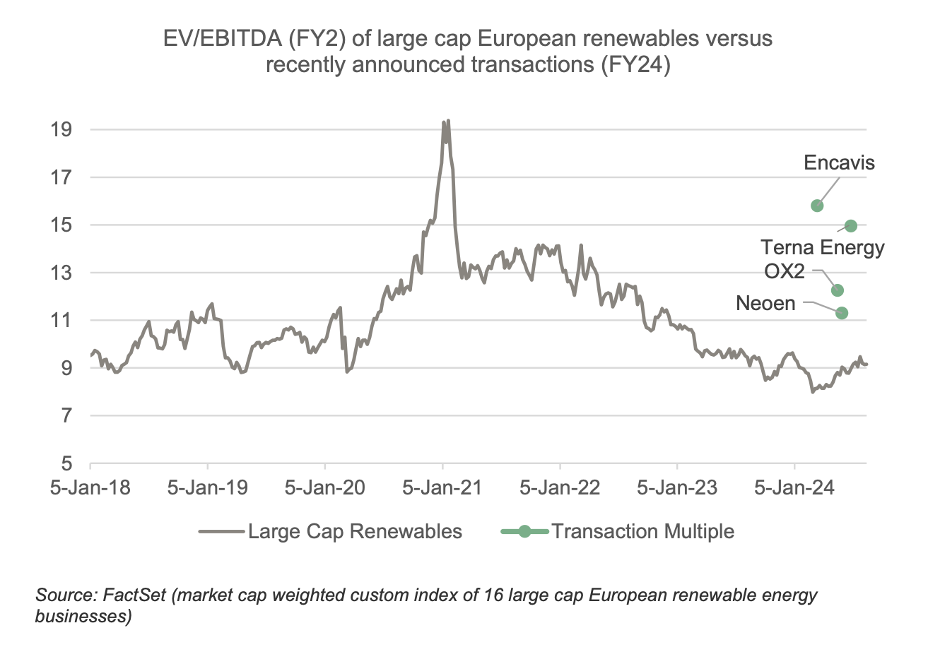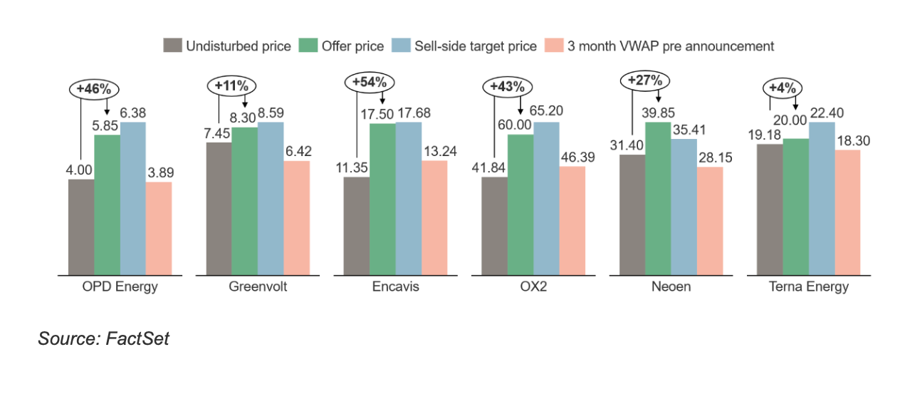 [2] Includes Neoen, OX2, Encavis and Terna Energy. Volume-weighted average price (VWAP) calculated in the 90 days leading up to the date of each transaction announcement (source: FactSet)